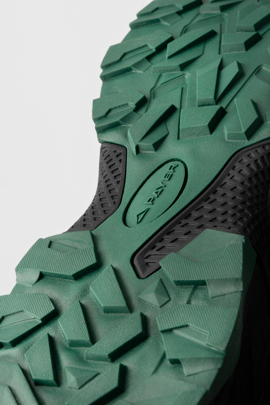 Шнурки водоталкивающие, содержат  мультифиламентную нить, не растягиваются, что гарантирует долговечность. Комбинированная подошва с эффектом антискольжения и гашения вибрации обеспечивает уверенное сцепление с различными поверхностями, а укрепленная пяточная часть и носок защищают от ударов.