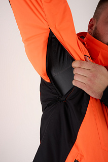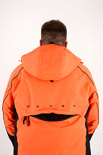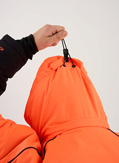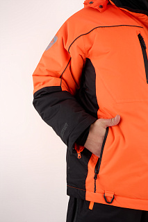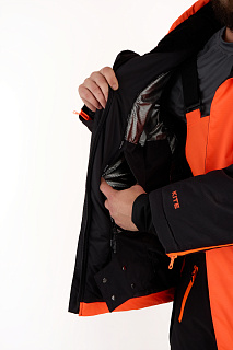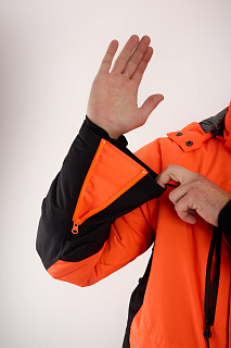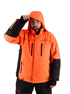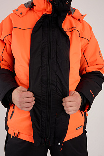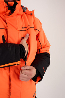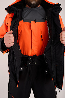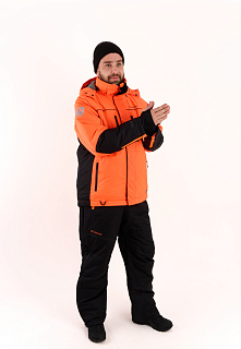 Костюм оснащен мембраной PROTEKT 10000/10000, анатомическим кроем для комфортной посадки, ветрозащитной планкой, усилениями на плечах и регулировкой по капюшону. Капюшон дополнен натуральным мехом для дополнительного комфорта. Магнитные кнопки облегчают использование костюма, а сигнальная повязка на рукавах повышает безопасность.